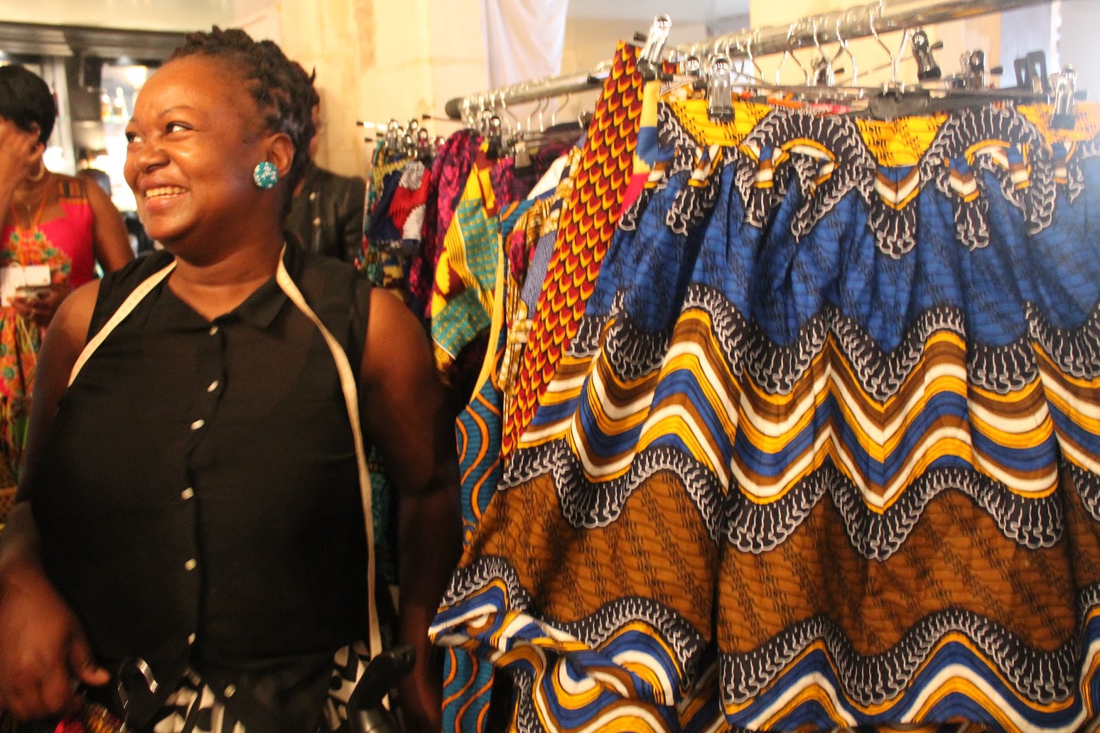 Je connaissais déjà la marque Ekeeeya créations pour l’avoir vue à la Natural hair academy l’année dernière, mais je n’en avais vu que les bijoux et accessoires. J’avais d’ailleurs craqué sur une paire de boucles d’oreille en forme d’Afrique. J’ai été très agréablement surprise de découvrir que la créatrice s’était mise aux vêtements et cela avec beaucoup d’originalité. J’ai donc fait la connaissance de la gentille et timide Bibi qui a été très disponible pour nous parler de sa marque et elle.