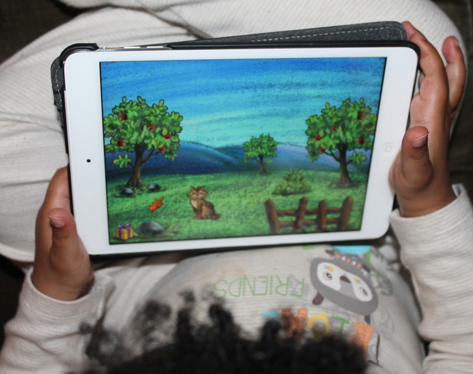 Bébé, ses premiers jeux est une appli avec à l’accueil un adorable ours en peluche dans son paquet cadeau qui appelle l’enfant « mon copain! »