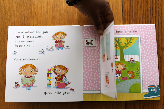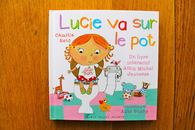 Nous sommes donc allés au Furet et avons trouvé le livre interactif « Lucie va sur le pot » de Camilla Reid aux éditions Albin Michel Jeunesse. J’aime beaucoup ces illustrations de Ailie Busby et le côté interactif a tout de suite plu à bébé quand il a feuilleté le livre.