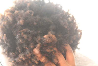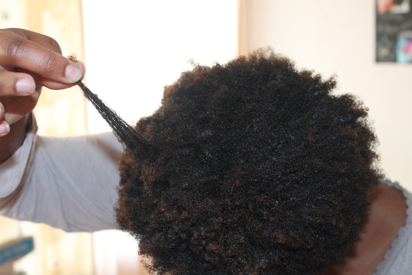Mes cheveux étaient en bantu knot out depuis quelques jours, ils ont maintenant la fâcheuse tendance de faire des noeuds à l’extrémité quand j’enlève mes noeuds bantous, je crois que ça se voit sur la photo. Ils tirent un peu la tronche ^^