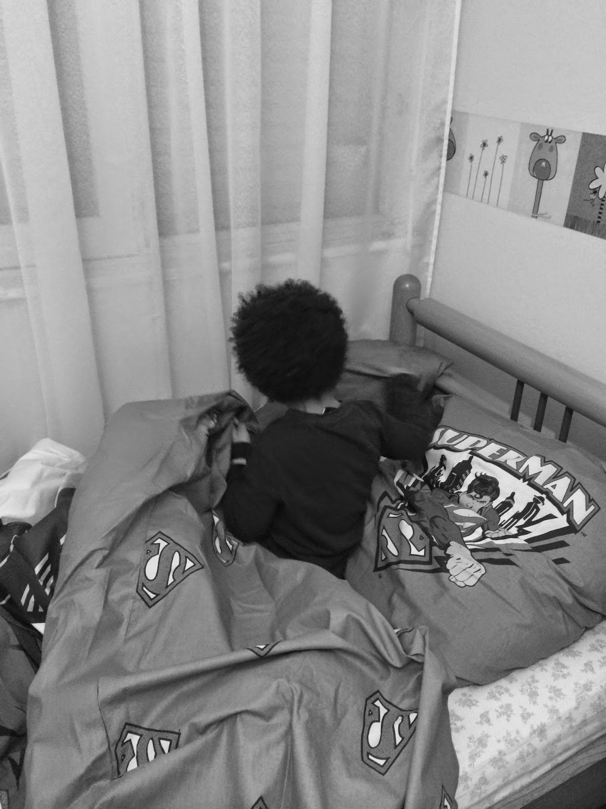 Depuis quelques nuits cette semaine Tit n’amour dors donc dans un lit de grand!