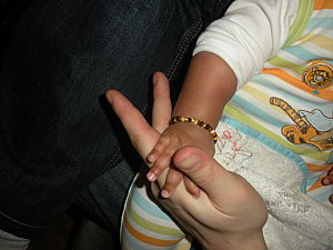 – L’ambre: L’ambre est réputée soulager les bébés qui font leurs dents. Tit n’amour avait donc un collier qu’on lui mettait rarement et un bracelet en ambre. Je ne saurais dire si c’est vraiment efficace, dans tous les cas c’est joli et ça a fait plaisir aux membres de la famille qui lui ont fait ce cadeau.