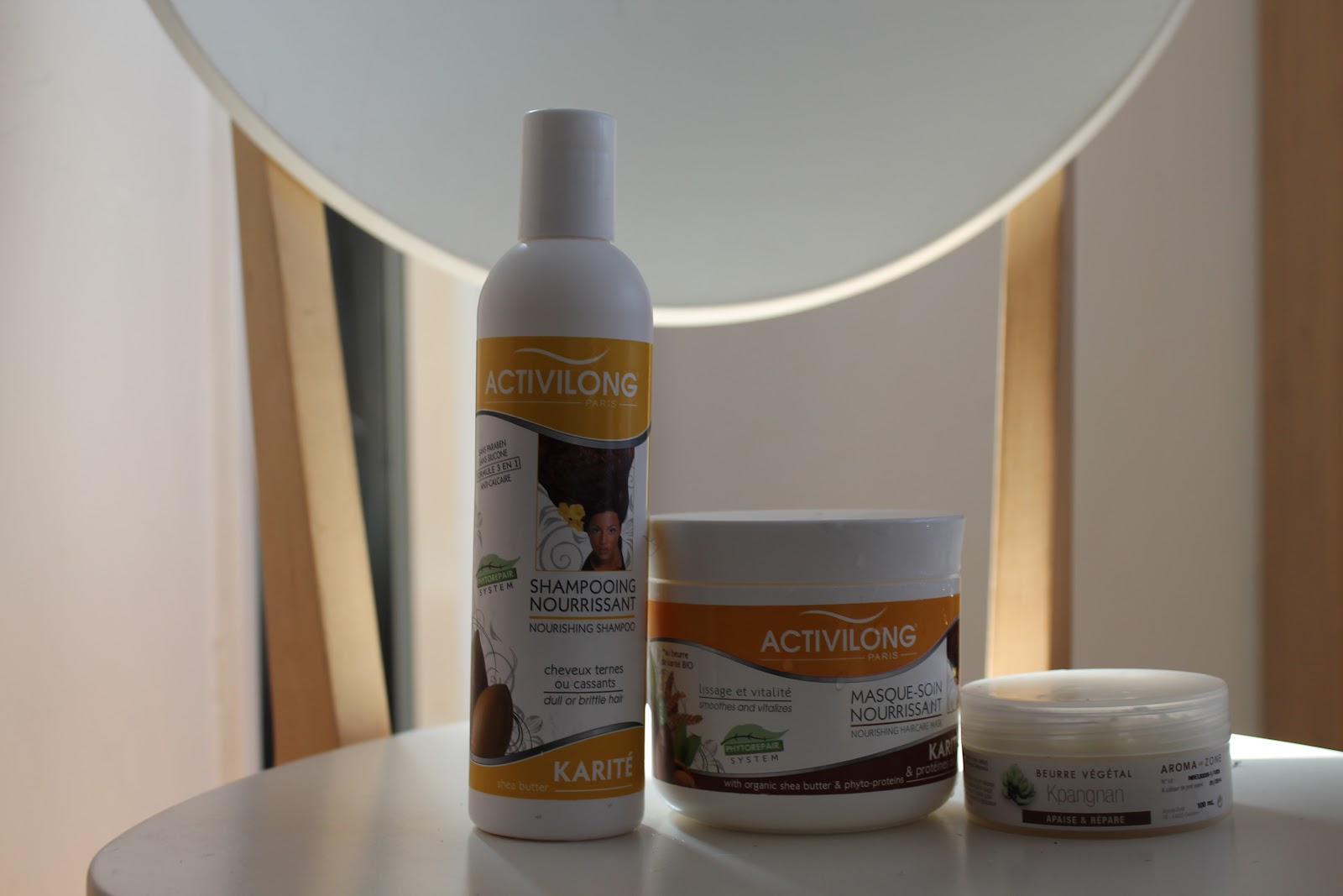 – Masque: Garnier Ultra Doux à l’huile d’argan et cranberry pour les cheveux colorés. Je l’utilise parfois tout seul en milieu de semaine je dors avec et je le rince à mon réveil. Masque Activilong au karité bio et protéines végétales qui fait également office d’AS.